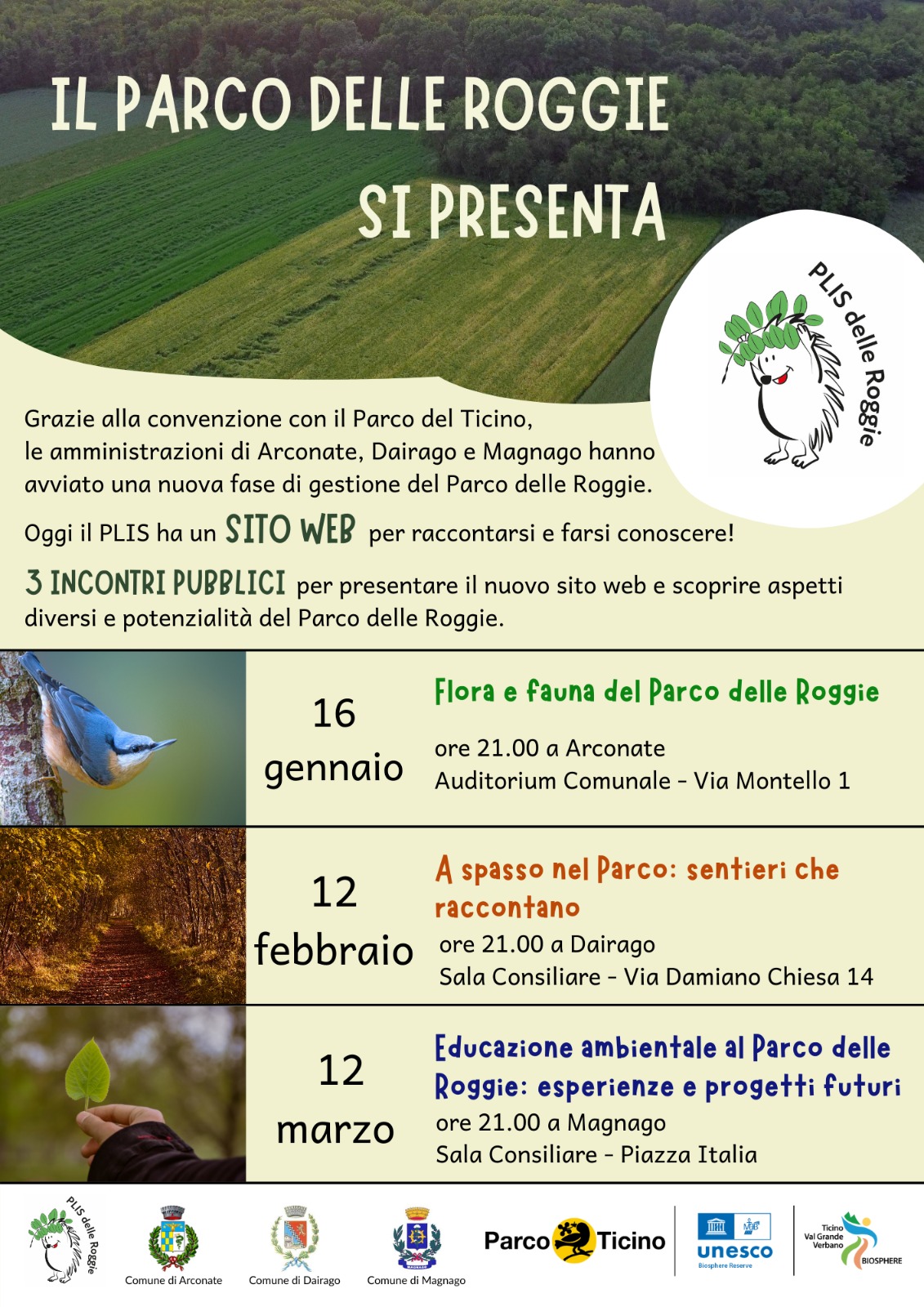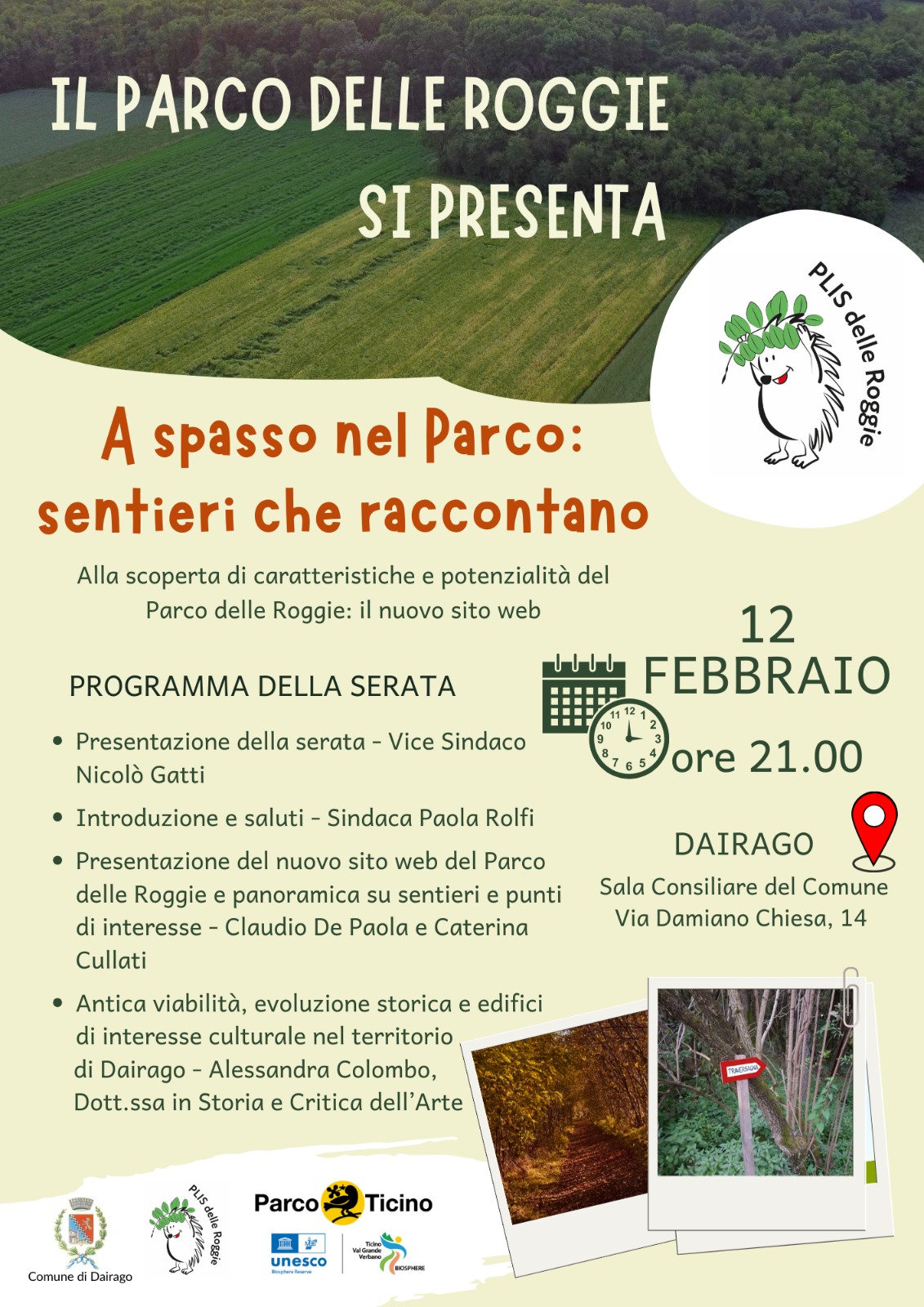 Giovedì 12 febbraio alle ore 21.00, presso la Sala consiliare del comune di Dairago, andremo alla scoperta delle caratteristiche e potenzialità del Parco delle Roggìe grazie al nuovo sito web